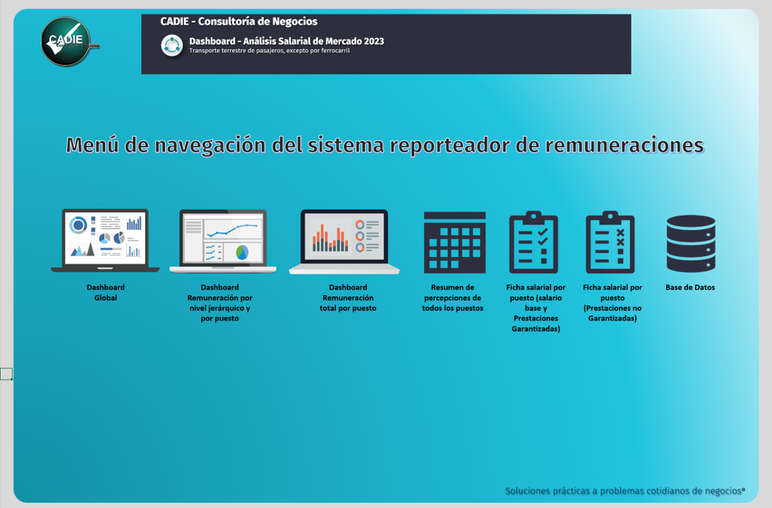 El Dashboard de análisis de remuneraciones de mercado automatizado en MS Excel es un archivo en el que a través de resúmenes prácticos y altamente ilustrativos se muestra la información sobre los salarios base y prestaciones (garantizadas y no garantizadas) que está pagando el mercado de su competencia directa en la zona en que se ubica su empresa.
