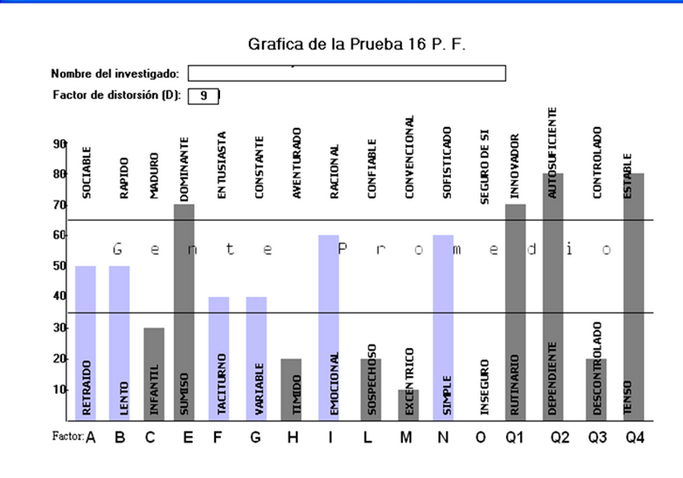 El test 16 PF mide la tendencia de personalidad en 16 factores clave. Proporciona un análisis de predominancia o tendencia en niveles del 1 al 9 para c/u de los factores de personalidad evaluados. Cada reactivo se dirige a medir un solo reactor, es decir, no hay interdependencia entre reactivos.